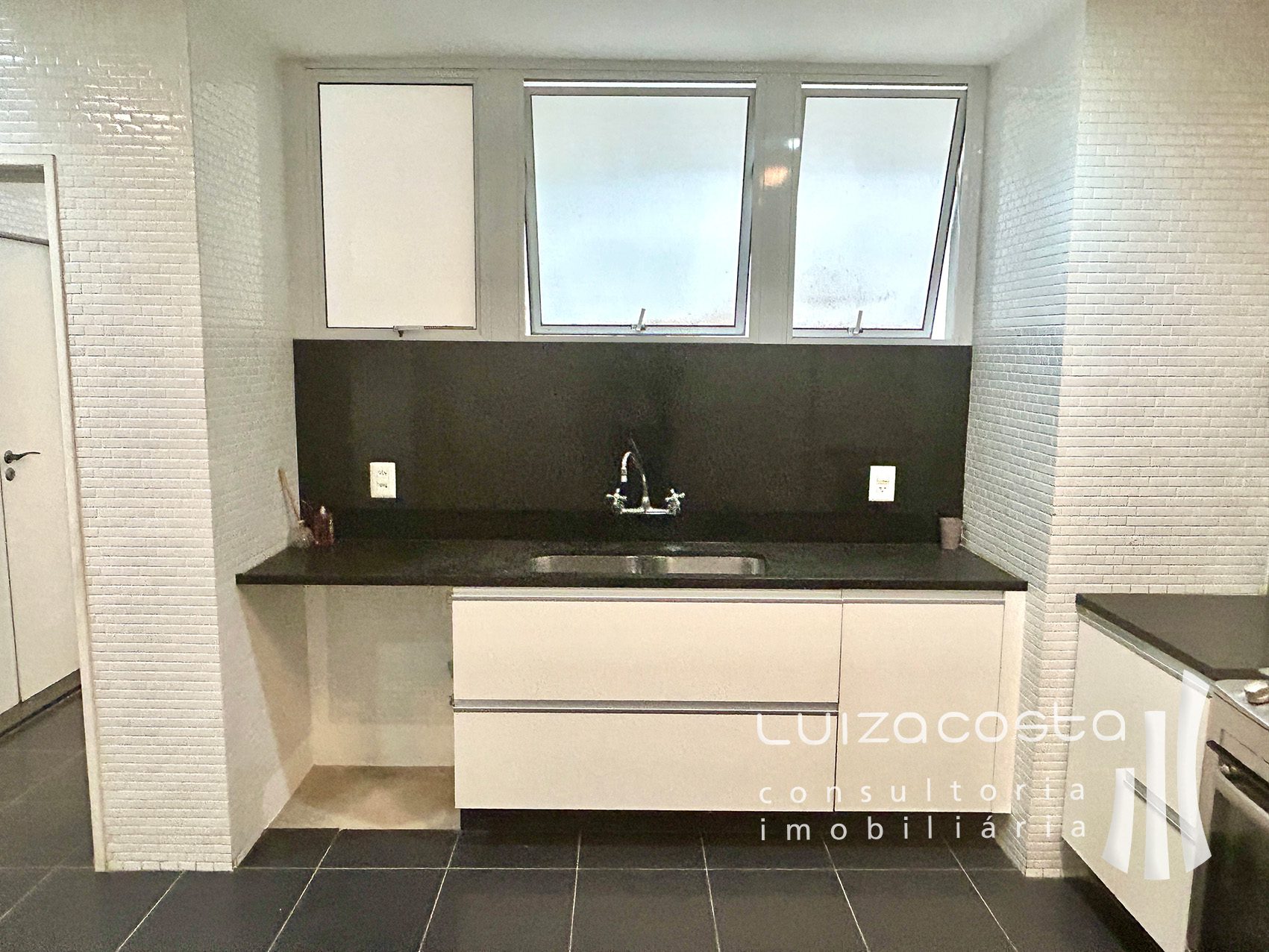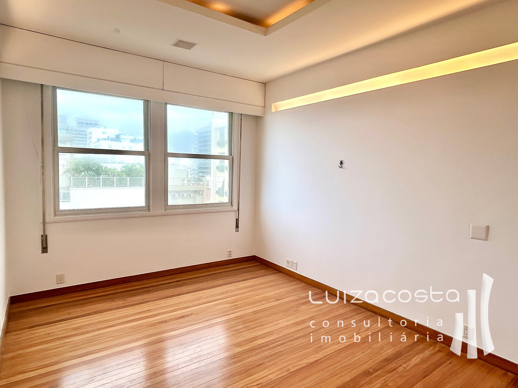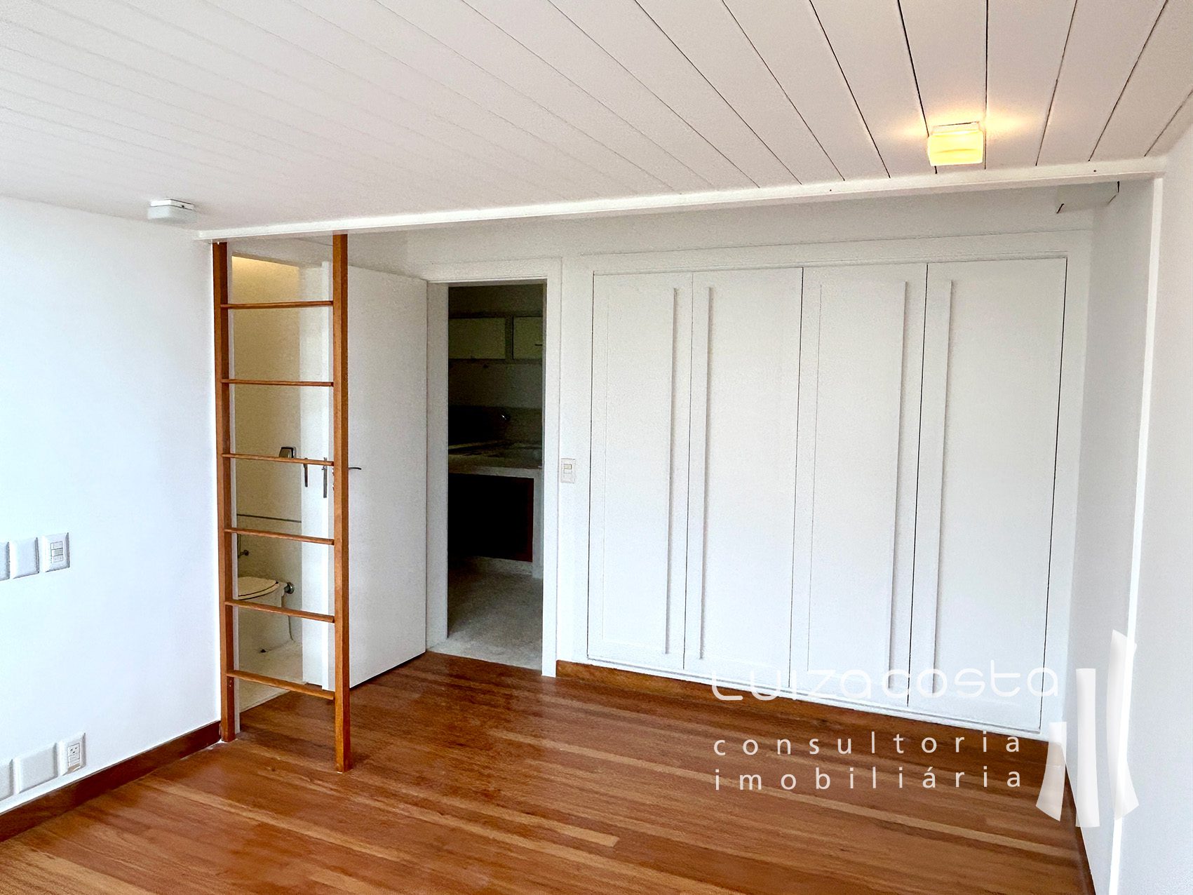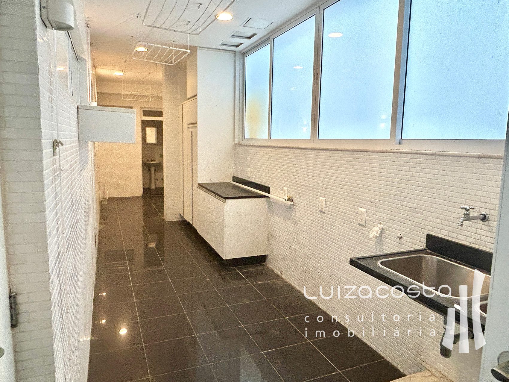 433 m2. Hall de entrada. Living com 90 m2 com piso em travertino romano, sala de jantar, escritório, lavabo, jacuzzi e sauna, 4 quartos com armários sendo 3 suítes – a principal com ótimo closet, copa e cozinha planejada com armários, ampla lavanderia, duas dependências, banheiro de serviço. Prédio com portaria 24h, segurança, salão de festas, maravilhosa sala de ginástica, piscina com raia de natação e sauna. 4 vagas na escritura. Andar alto, todo reformado, vistão espetacular!
