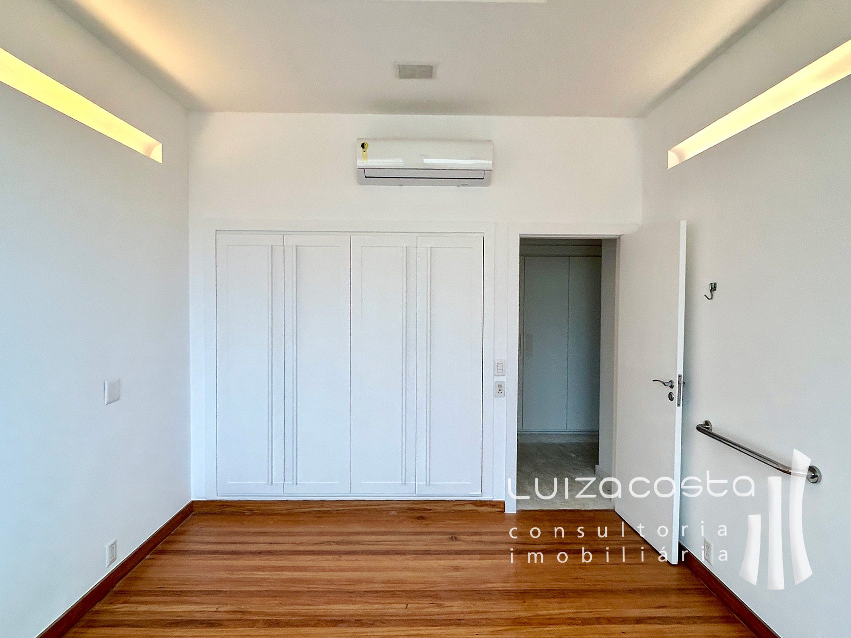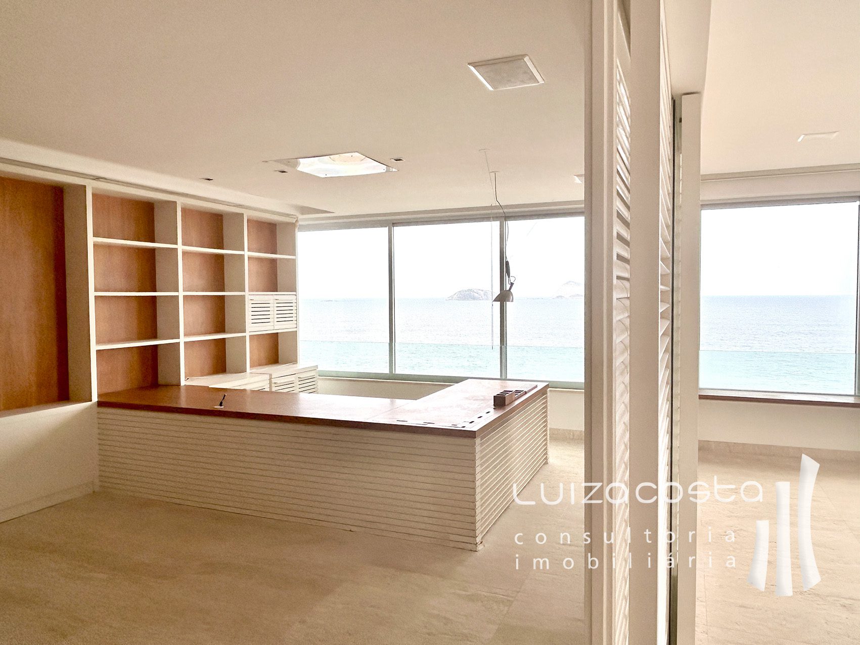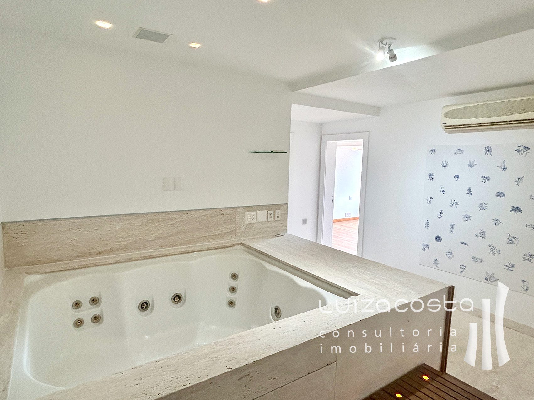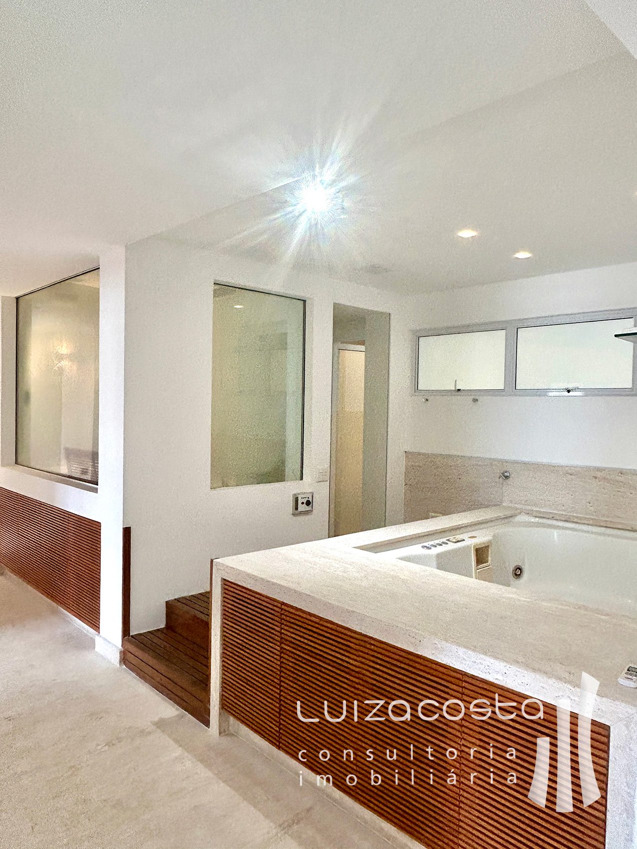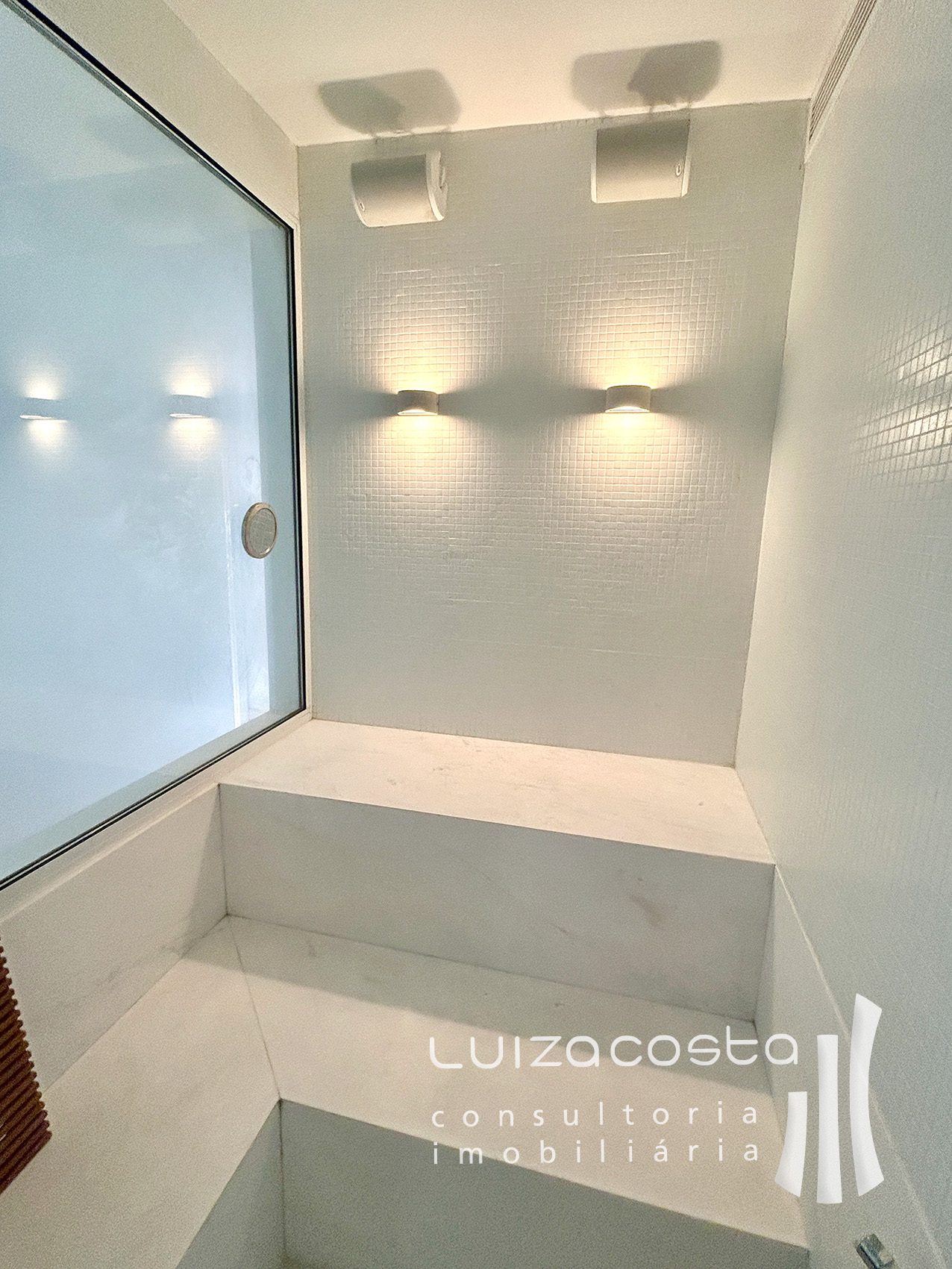 433 m2. Hall de entrada. Living com 90 m2 com piso em travertino romano, sala de jantar, escritório, lavabo, jacuzzi e sauna, 4 quartos com armários sendo 3 suítes – a principal com ótimo closet, copa e cozinha planejada com armários, ampla lavanderia, duas dependências, banheiro de serviço. Prédio com portaria 24h, segurança, salão de festas, maravilhosa sala de ginástica, piscina com raia de natação e sauna. 4 vagas na escritura. Andar alto, todo reformado, vistão espetacular!